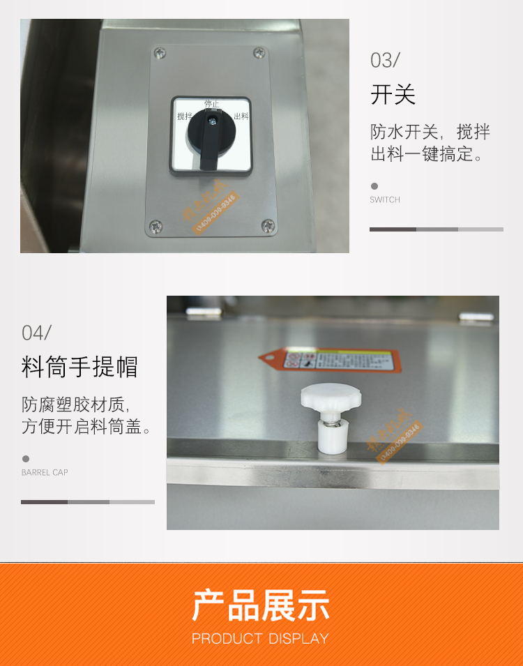本機適用于食堂、飲食店、賓館、食品廠的糧食加工和化工原料、工業(yè)粉末攪拌等用途。攪拌料筒體采用不銹鋼板,防污、防銹性能良好。