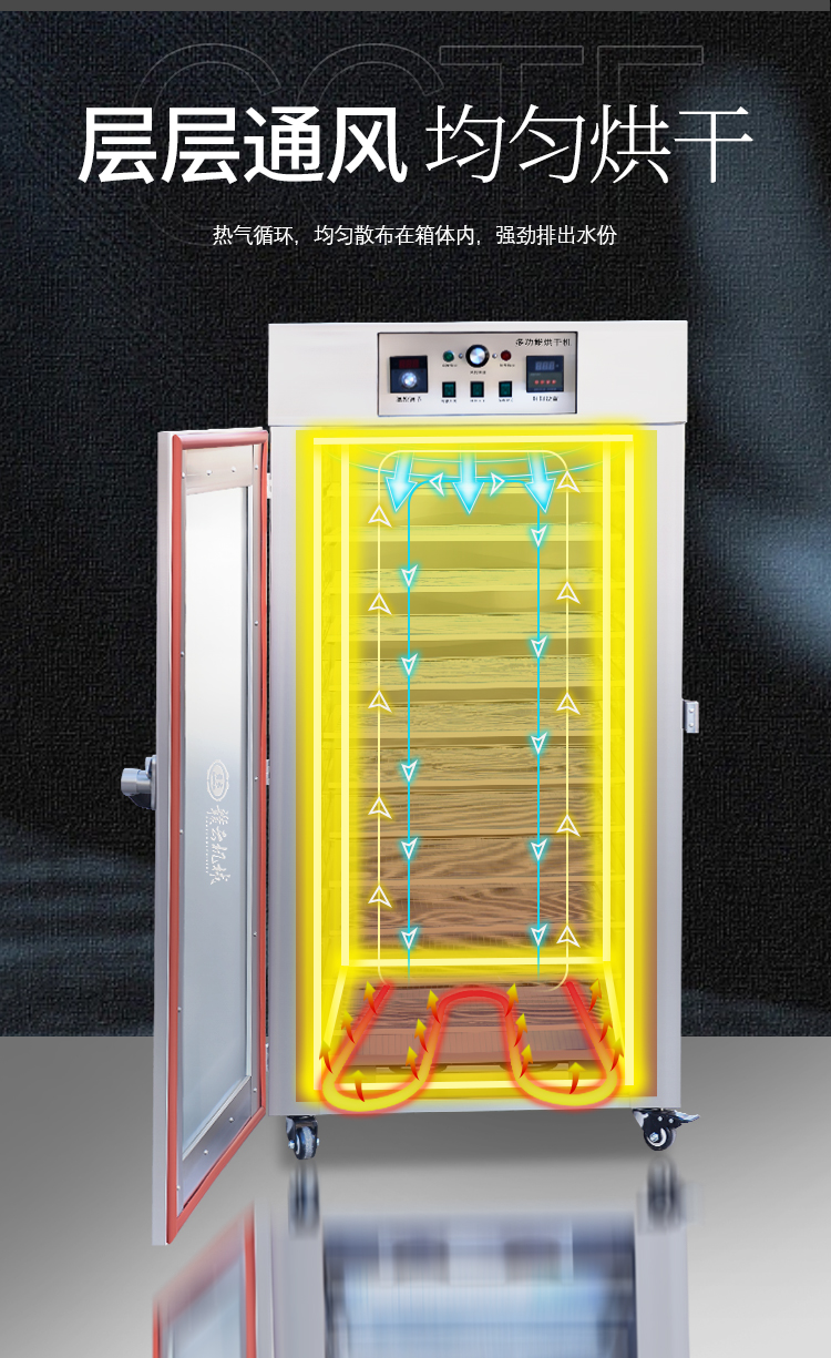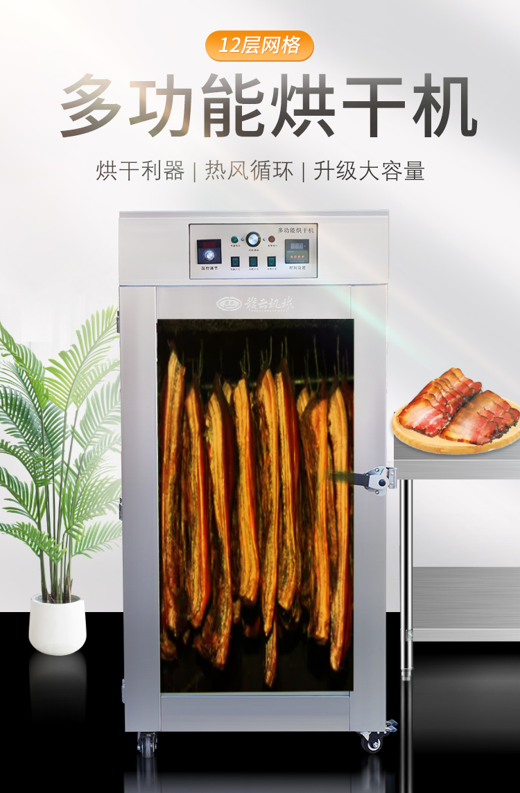 商用多功能烘干機,你知道嗎?有這樣一款多功能烘干機,它可以針對肉制品:臘腸、臘肉、板鴨等,也可以針對芒果烘干、干果烘干、蔬菜烘干等多種不同食材烘干,使用不銹鋼材質(zhì),使用大風(fēng)機散熱讓機器360度立體烘干。