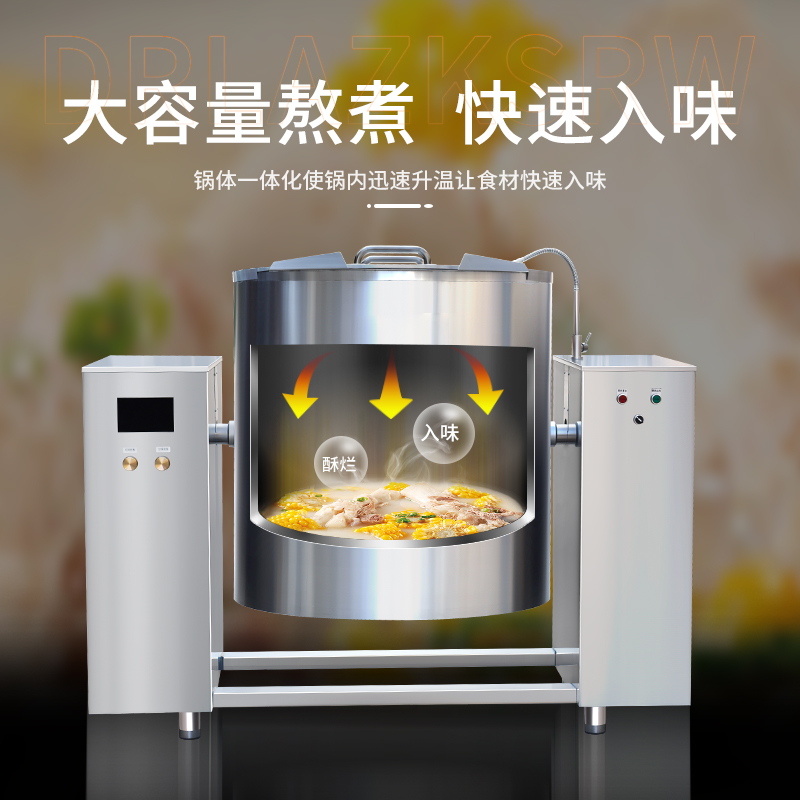 大容量可傾斜式電磁湯鍋,使用不銹鋼材質(zhì),鍋體多重聚能環(huán)使鍋體受熱均勻,熱能快速轉(zhuǎn)化并且受熱后不易冷卻,湯鍋采用可搖擺設(shè)計(jì),方便清洗和出料,并且擁有400L大容量設(shè)計(jì),每一次熬湯、熬粥、鹵肉、食品加熱更大量,此款商用湯鍋廣泛用于中央廚房,預(yù)制菜加工、酒店、食堂等場(chǎng)所