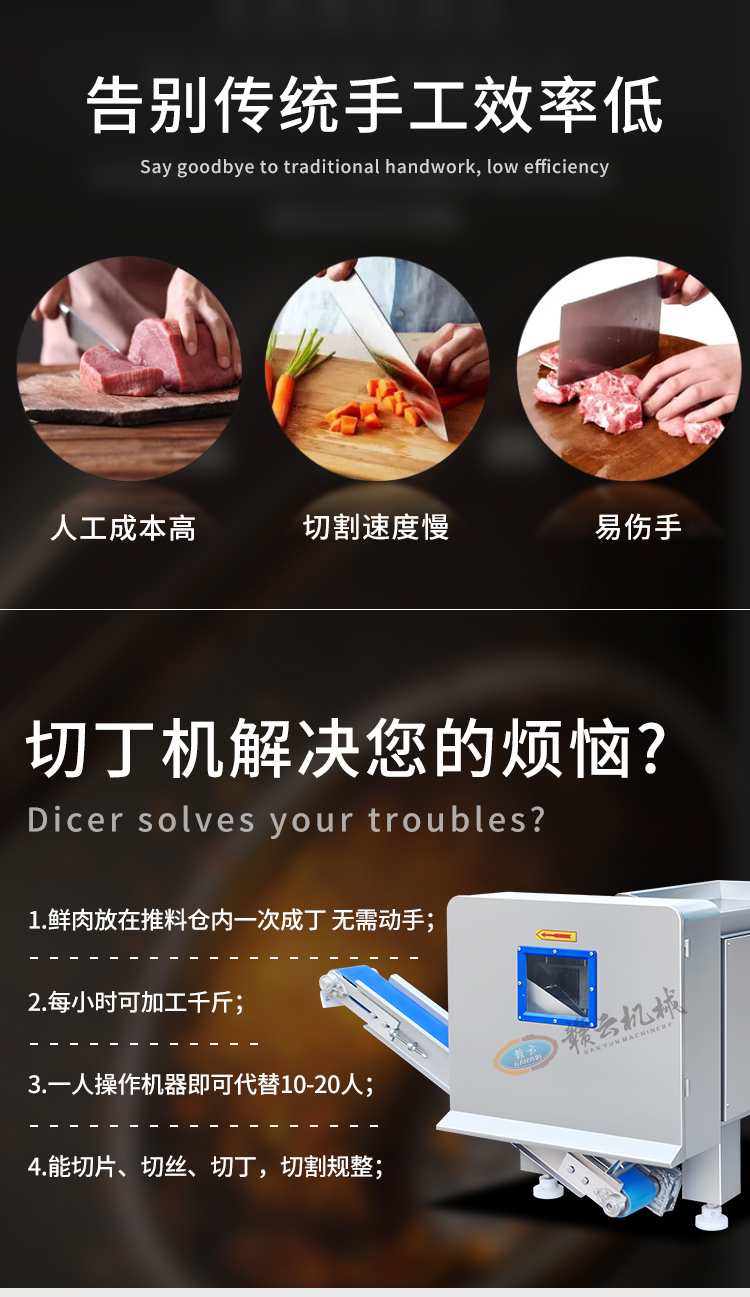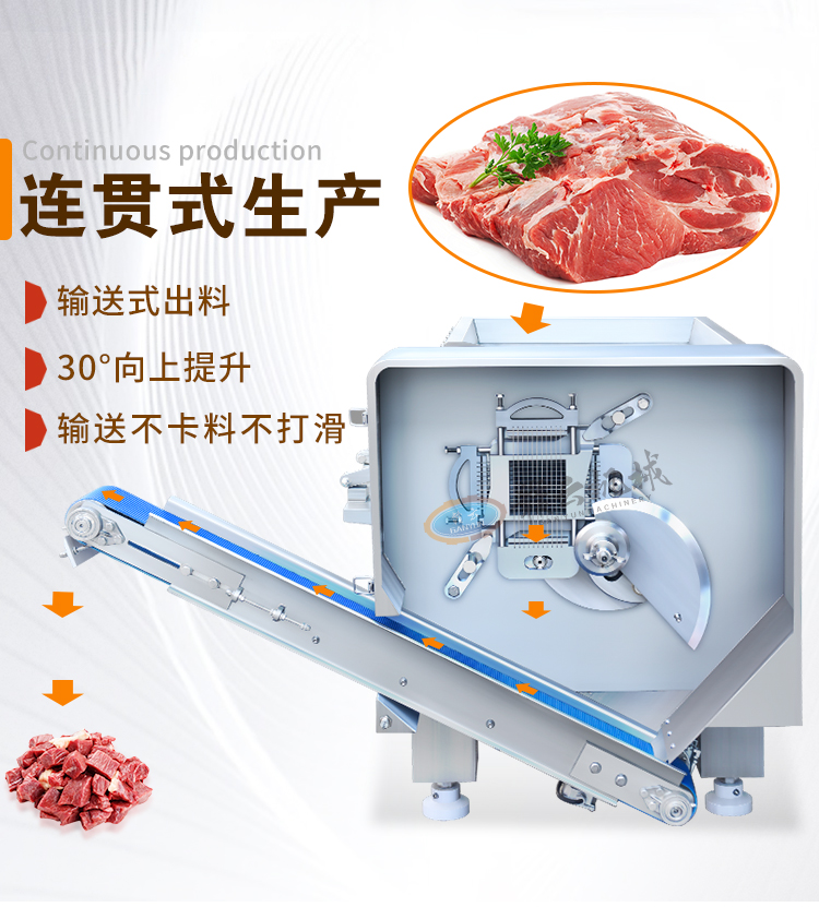 主頁-> 肉制品前處理->切肉機(jī)->550切肉丁機(jī)(帶輸送帶)