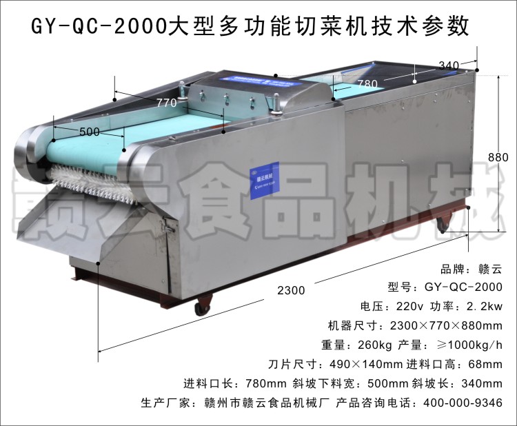大型多功能果蔬切菜機放置平穩(wěn)可靠,隨機提供詳細的操作說明,和使用方法,讓你用起來更加得心應(yīng)手,價格合理,外形美觀,結(jié)構(gòu)緊湊,操作簡便,工作可靠,餐廳多功能切菜機功能齊全,凡與食物接觸部分均采用不銹鋼制造,多功能切菜機符合衛(wèi)生標準,同時設(shè)備采用優(yōu)質(zhì)不銹鋼刀片,永不生銹,安全衛(wèi)生,保證菜味不變,價格低廉,非常具有性價比,多功能不銹鋼切菜機能快速的切出各種樣式,滿足不同客戶的多樣化需求,更多有關(guān)設(shè)備的操作問題歡迎來電咨詢贛云食品機械切菜機產(chǎn)家。